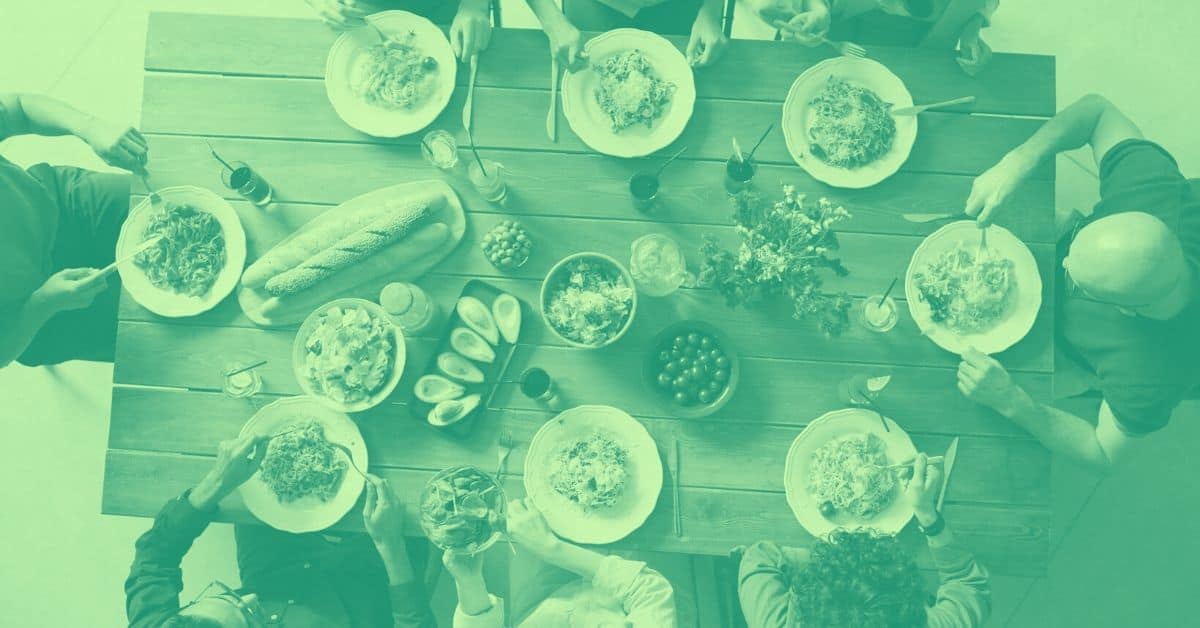 Vi laver mad i fælleshusets køkken seks dage om ugen, søndag til fredag, men det er et individuelt valg hvor ofte man vælger at deltage i fællesspisningen. Og det er altid muligt at vælge take-away, hvor man henter maden i fælleshuset kl. 18 og spiser den hjemme hos sig selv. Det er også muligt at deltage med et deltidsmedlemskab hvor husstanden kun deltager i fællesspisning tre dage om ugen, og så arbejder tilsvarende mindre i køkkenet. Tilmelding kører over intranettet, og betalingen foregår automatisk via PBS. Man betaler kun for de måltider man spiser. Det er muligt at tage gæster med – faktisk så mange man har lyst til.